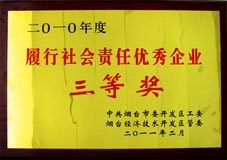 2011年2月12日,煙臺開發(fā)區(qū)經(jīng)濟工作會議在開發(fā)區(qū)管委禮堂召開,大會隆重表彰了2010年度為全區(qū)經(jīng)濟社會發(fā)展做出突出貢獻的先進集體和個人,其中歐瑞傳動電氣有限公司榮獲“履行社會責任優(yōu)秀企業(yè)三等獎”。