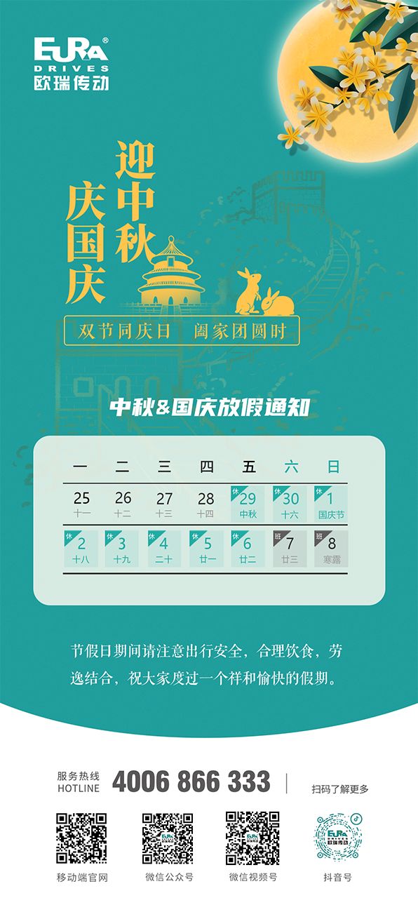 雙節(jié)同慶|歐瑞傳動中秋&國慶假期放假通知